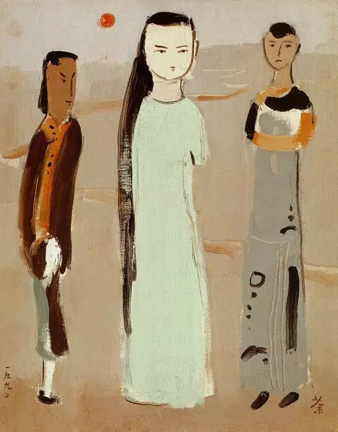 吳冠中 楚國兄妹-42×32-布面油畫-1990