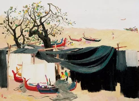 吳冠中-漲潮-65×100-布面油彩-1994