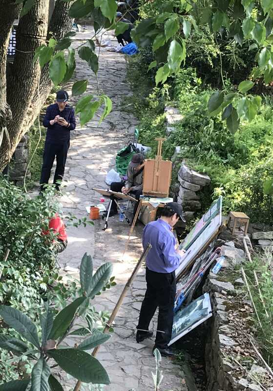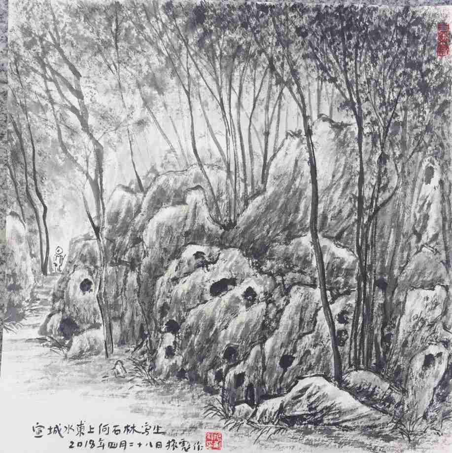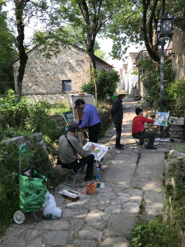 上海市美術(shù)家協(xié)會(huì)創(chuàng)作沙龍21位畫家于4月26日一30日赴安徽宣城水東鎮(zhèn),先后在水東古鎮(zhèn)的老街、老宅、清代十八踏、天主堂,上何村的石林,龍泉洞景區(qū),鴉山古道,千年銀杏長廊,小胡村宗村等古村,用國畫、油畫、水彩畫和速寫等藝術(shù)形式采風(fēng)寫生,大家積極投入,短短五天結(jié)累了百余幅寫生作品,寫生期間還組織了一次觀摩交流,應(yīng)當(dāng)?shù)劓?zhèn)政府及文化旅游部門邀請,沙龍從每位畫家寫生作品中挑選一幅作品作為鎮(zhèn)陳列館展品陳列展出。本次活動(dòng)由上海美協(xié)創(chuàng)作沙龍和宣城振宣文化發(fā)展有限公司共同舉辦。是自去年上海市美術(shù)家協(xié)會(huì)和宣城市宣州區(qū)政府簽定《上海美術(shù)家協(xié)會(huì)水東創(chuàng)作寫生基地合作協(xié)議》后又一次寫生活動(dòng)。上海美協(xié)副主席、秘書長陳琪、水東鎮(zhèn)黨政主要領(lǐng)導(dǎo)對這次活動(dòng)作了精心安排和指導(dǎo)。