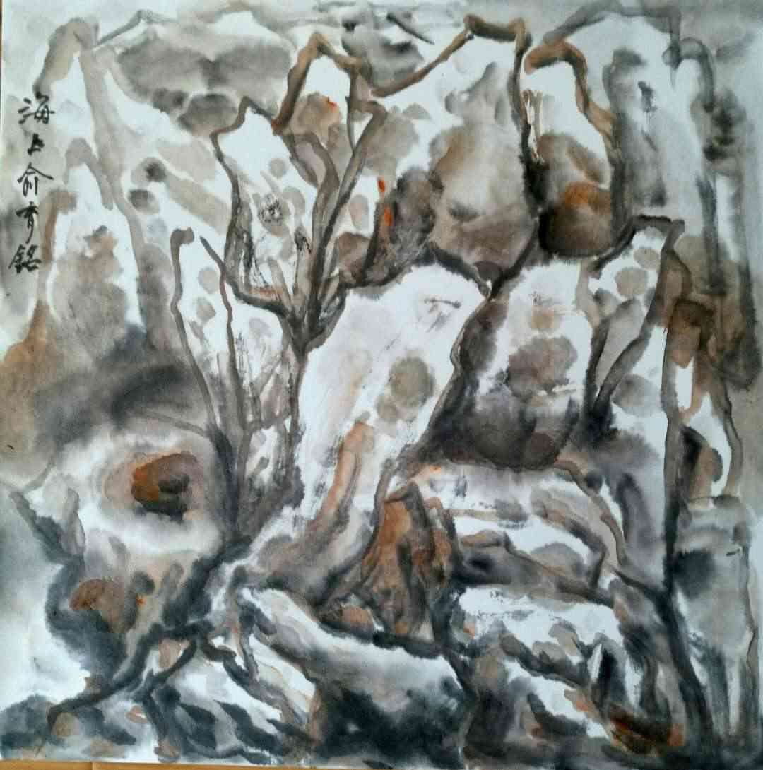 作者:夏建峰 作品:水東上何村的石林 中國畫 尺寸(200×50cm)