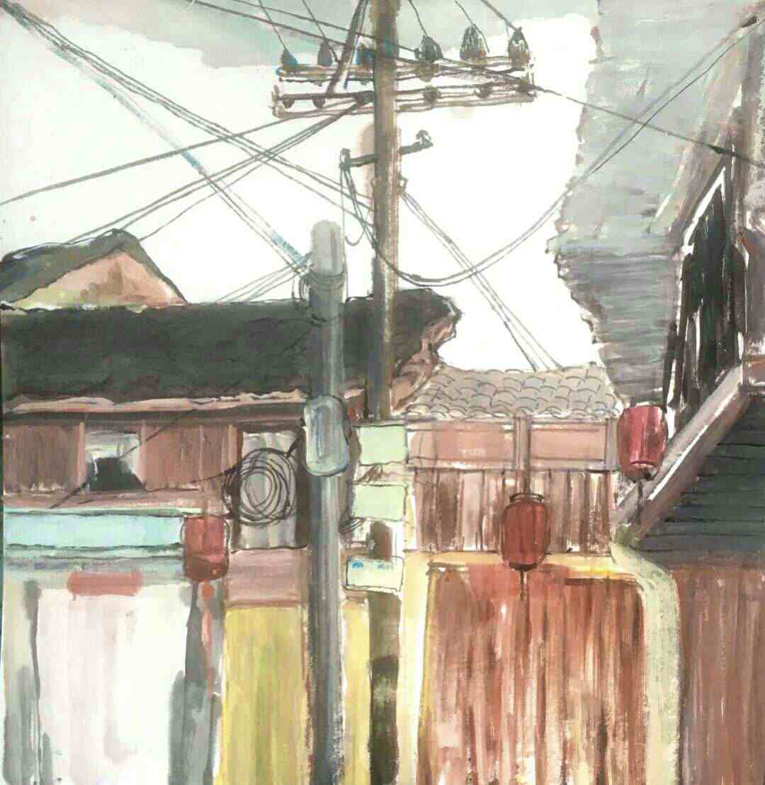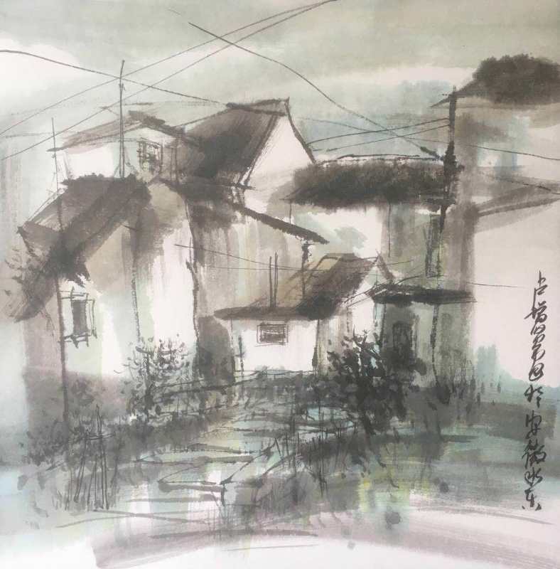 作者:殷實(shí) 作品:水東古鎮(zhèn) 紙本水彩 尺寸(45×45cm)
