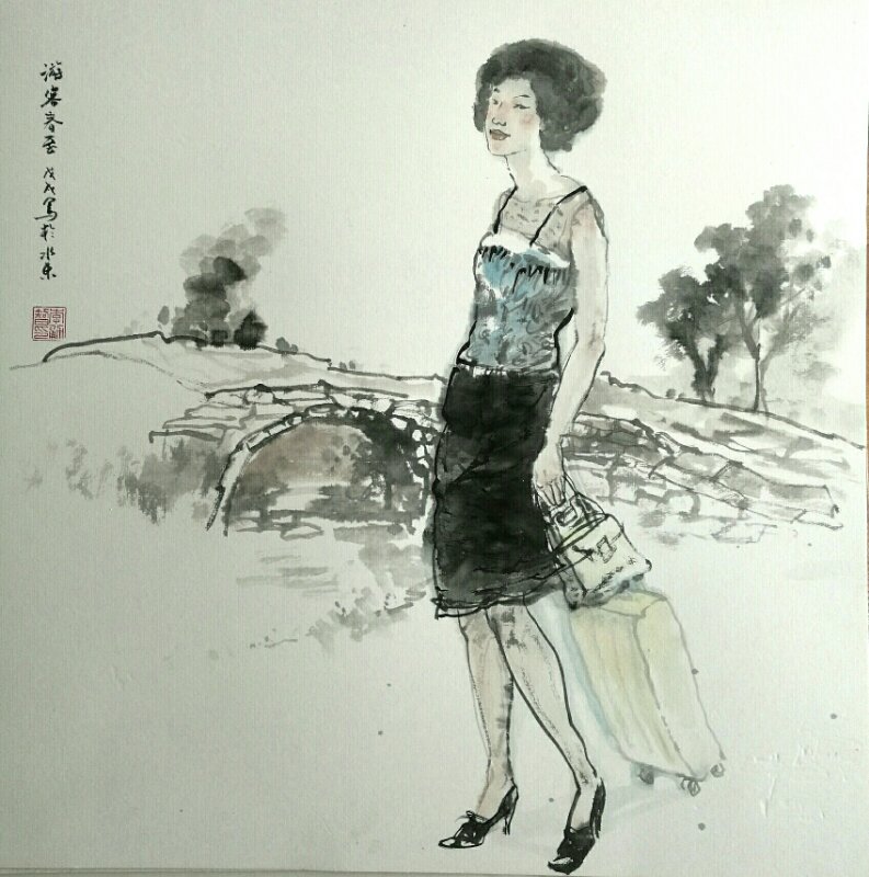 作者:李勇智 作品:游客春至 水墨國畫 尺寸(50×50cm)