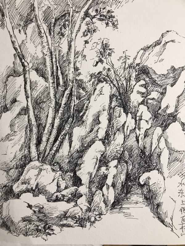 作者:嚴(yán)榮鎮(zhèn) 作品:水東古鎮(zhèn)石林寫生