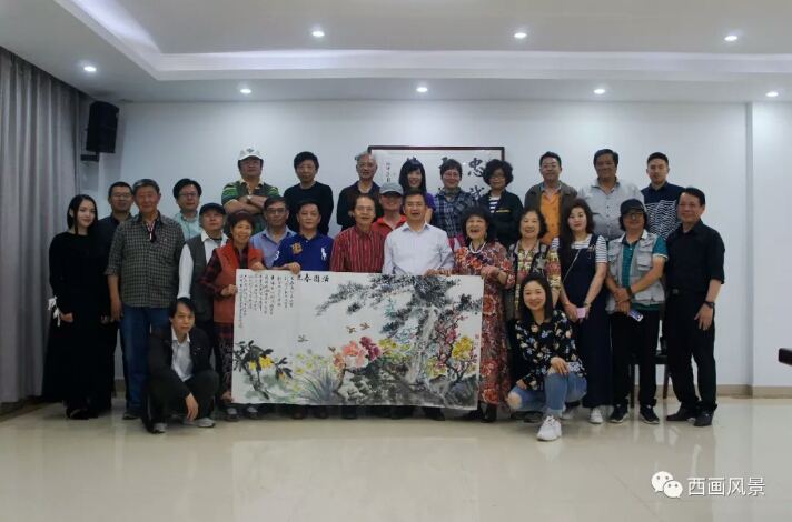 29日晚上,鎮(zhèn)政府宴請了上海的藝術(shù)家們,在武國強(qiáng)老師的要求下,史新民老師提前做好了集體創(chuàng)作一幅大畫的構(gòu)圖和準(zhǔn)備工作,根據(jù)每個(gè)畫家的特長,預(yù)先做了安排,在創(chuàng)作的時(shí)候以史新民老師主筆,武國強(qiáng)老師現(xiàn)場指導(dǎo)。