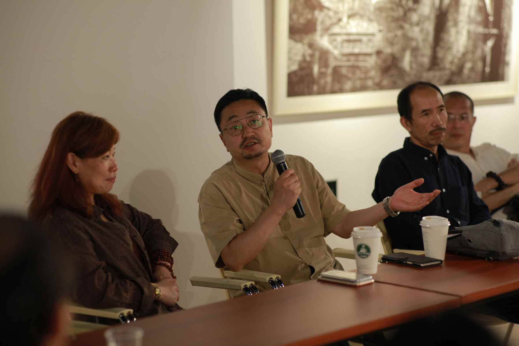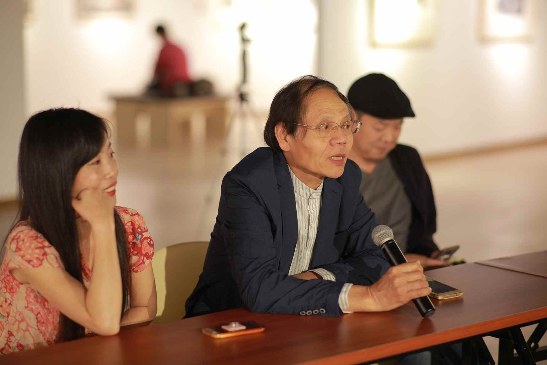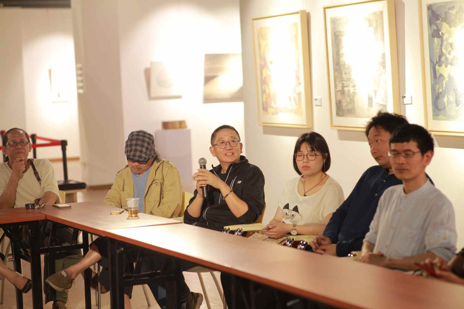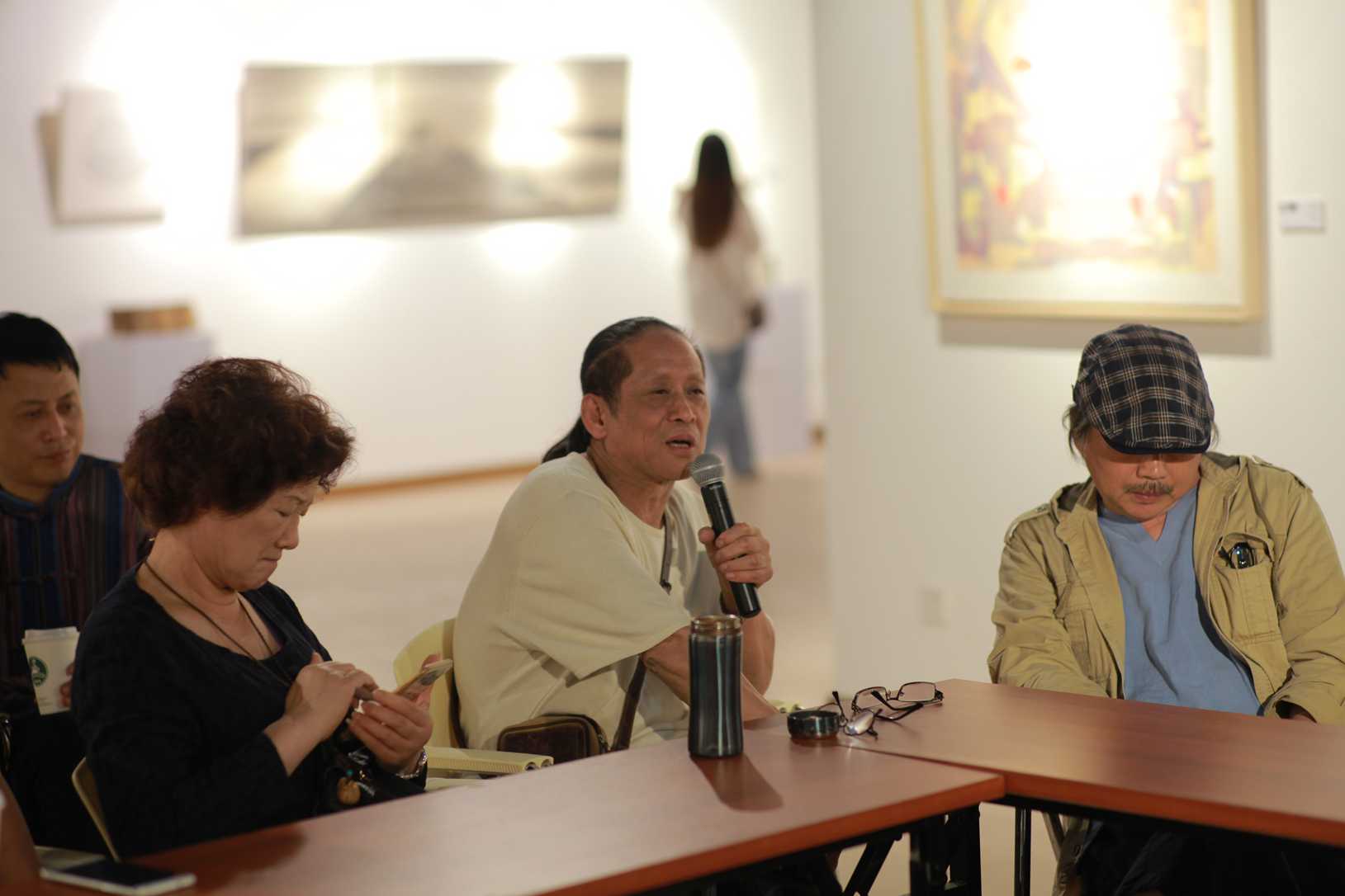 15點30 分,眾嘉賓和到場藝術(shù)家移步展廳,進行學(xué)術(shù)研討分享會。本次分享會通過騰訊直播實現(xiàn)與場外公眾實時分享。