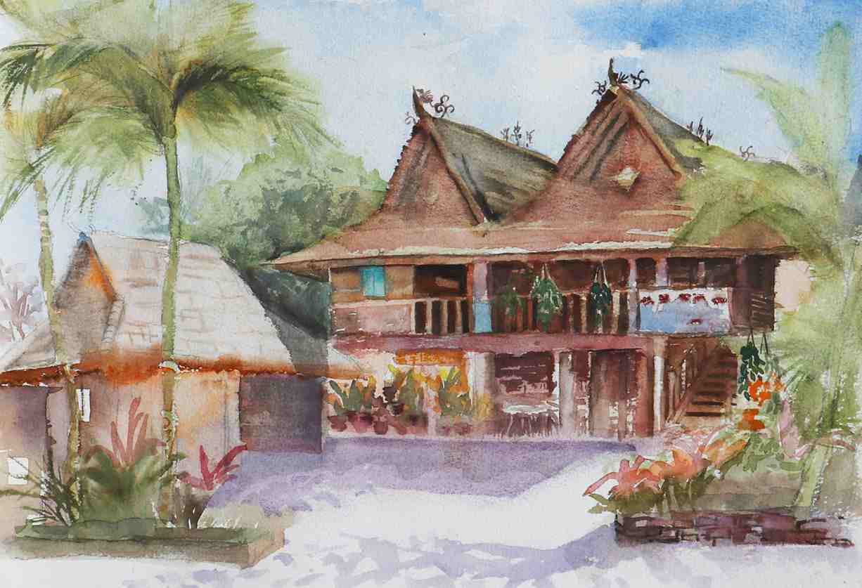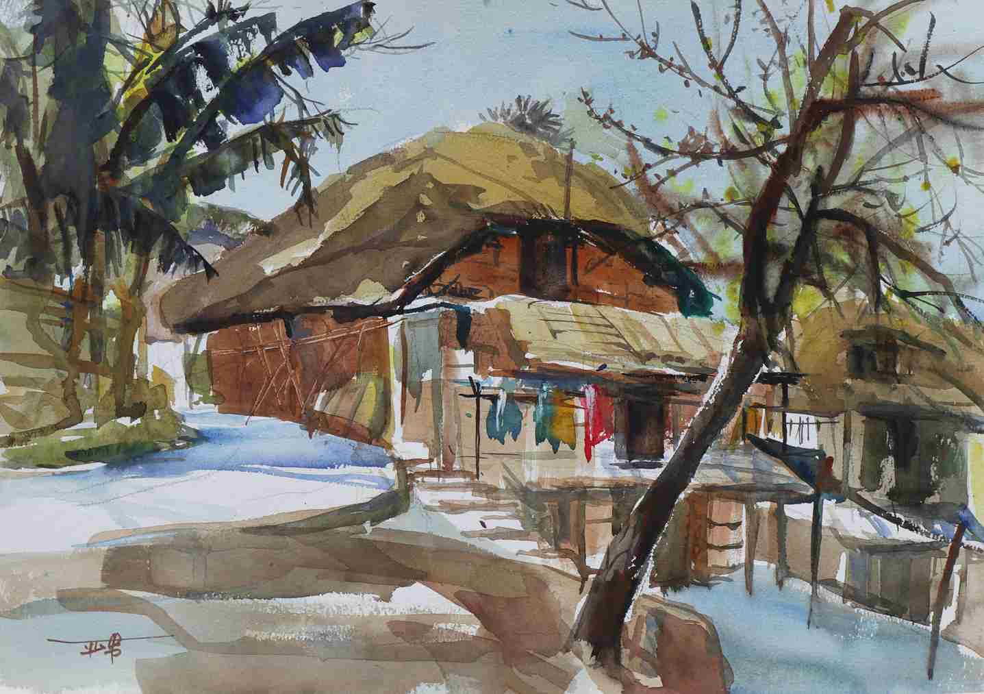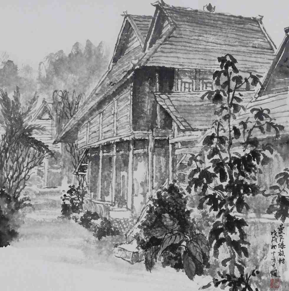 云南茶馬古道碧溪鎮寫生 50×50cm