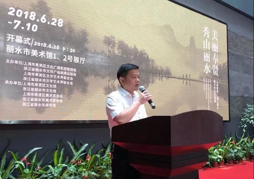 6月28日上午,由上海市美術(shù)家協(xié)會、浙江省美術(shù)家協(xié)會指導(dǎo),上海市奉賢區(qū)文化廣播影視管理局、浙江省麗水市文化廣電新聞出版局、上海市奉賢區(qū)文學(xué)藝術(shù)界聯(lián)合會、浙江省麗水市文學(xué)藝術(shù)界聯(lián)合會主辦,上海市奉賢區(qū)文化館、浙江省麗水市文化館、上海市奉賢區(qū)美術(shù)家協(xié)會、浙江省麗水市美術(shù)家協(xié)會、浙江省麗水市美術(shù)館承辦的“美麗奉賢 秀山麗水——上海奉賢·浙江麗水美術(shù)作品交流展”在浙江省麗水市文化館一樓大廳盛大開幕。