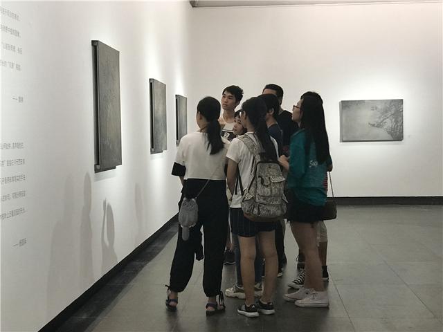 本次展覽藝術家洪磊(左二)于3號展廳介紹作品
