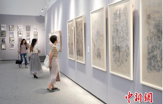 中新網(wǎng)上海7月11日電 (于俊 胡文君)從不同角度,探討中國新水墨藝術(shù)發(fā)展話題的“水+墨:從新海派到當代”展覽11日在上海寶山國際民間藝術(shù)博覽館開幕。