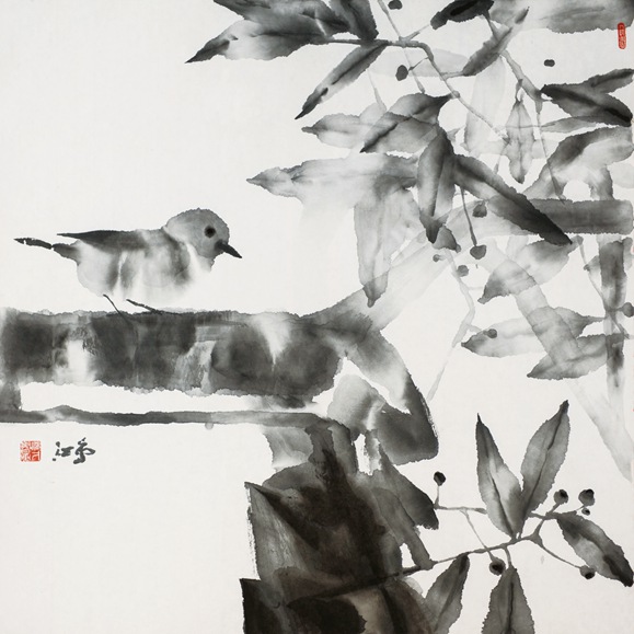 作品《鳥鳴林更幽》2017年11月入選上海第九屆美術大展