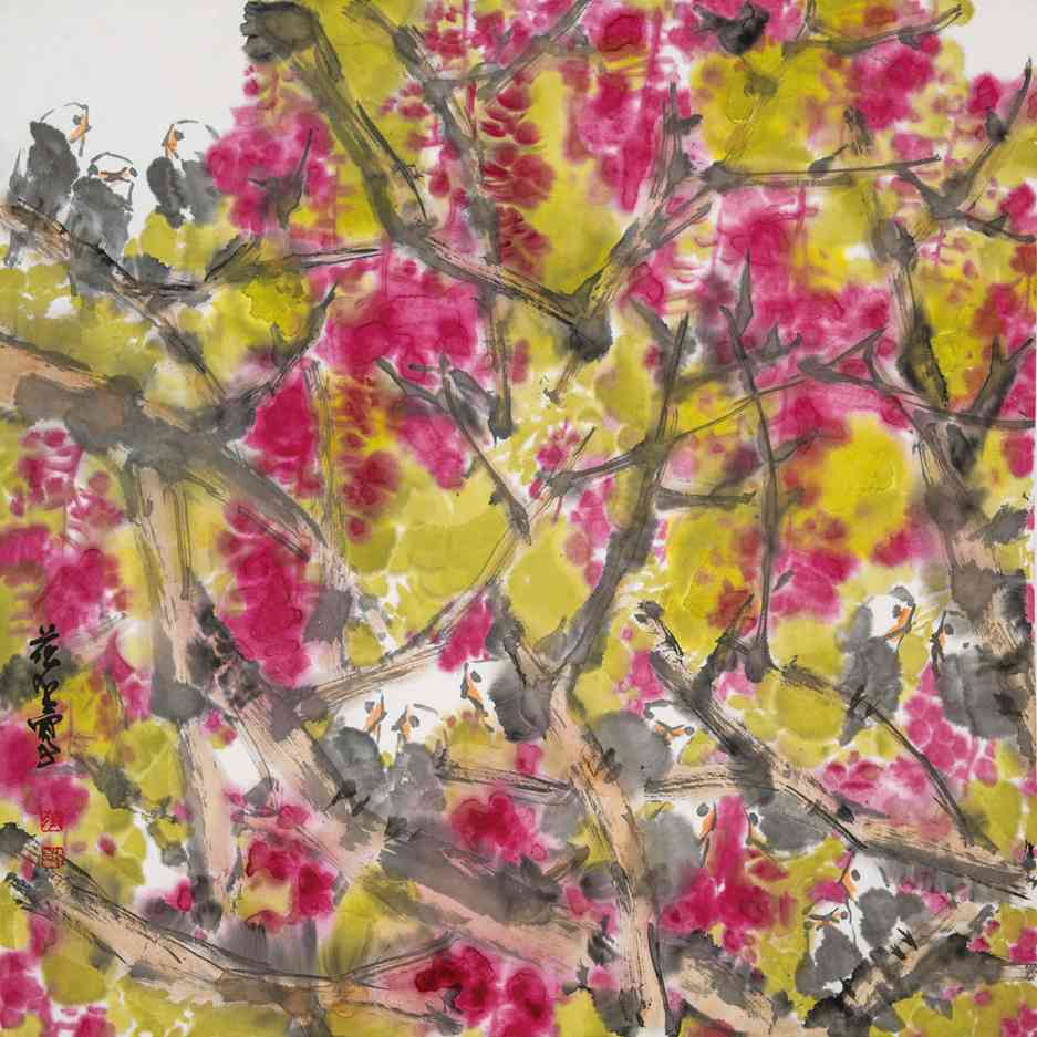 花青(花連喜),1957年出生于上海。自幼酷愛繪畫藝術,專攻大寫意花鳥畫。現為中國美術家協會會員、上海市美術家協會會員、中國智永書畫院常務理事、國家一級美術師、中國太湖書畫院副院長。多次獲得全國美術家協會舉辦的大型美展,并多次獲得獎項。