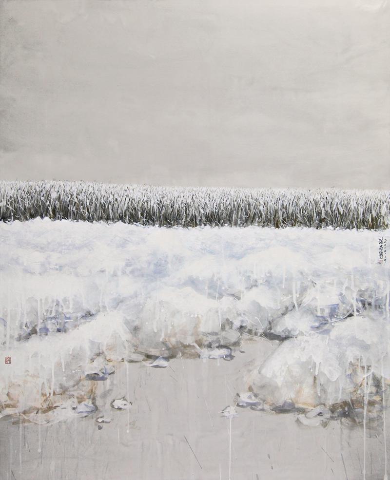本次展覽呈現(xiàn)于上海中國(guó)畫院美術(shù)館一樓、二樓展廳,近60幅水墨精品或斑駁重彩、或水墨淋漓,將傳統(tǒng)的“荷塘”母題演繹出更為寬泛和多義的內(nèi)涵。陸春濤在出色的傳統(tǒng)水墨功底基礎(chǔ)上,不落前人筆墨與圖式的窠臼,完美地將東西方美學(xué)與視覺(jué)審美融會(huì)貫通。從筆墨語(yǔ)言和形式構(gòu)成上看,他的水墨近似乎抽象,甚至?xí)屓寺?lián)想到西方的“抽象藝術(shù)”“表現(xiàn)性藝術(shù)”,這在很大程度上消解了傳統(tǒng)中國(guó)畫的筆墨程式。同時(shí),其水墨性表達(dá)又很好地繼承了“東方式水墨精神”的衣缽,與水墨文化傳統(tǒng)中“心觀萬(wàn)象”的智慧更加息息相通。尤為可貴的是,陸春濤在完成藝術(shù)語(yǔ)言的自然轉(zhuǎn)換和繪畫形態(tài)的現(xiàn)代嬗變的同時(shí),還成功地實(shí)現(xiàn)了傳統(tǒng)水墨精神與現(xiàn)代社會(huì)中人的精神訴求合二為一的境界。