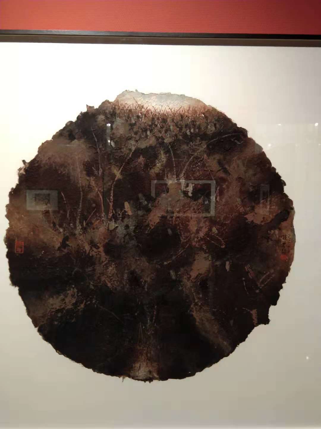 春濤,他把作品畫在不同的材料上,他用手工皮紙,不規則的邊,皮紙里粗糙的雜草,正好是畫家需要表現的機理效果,加上畫家無限的想象力,完美筆墨與畫家的思想結合在一起。