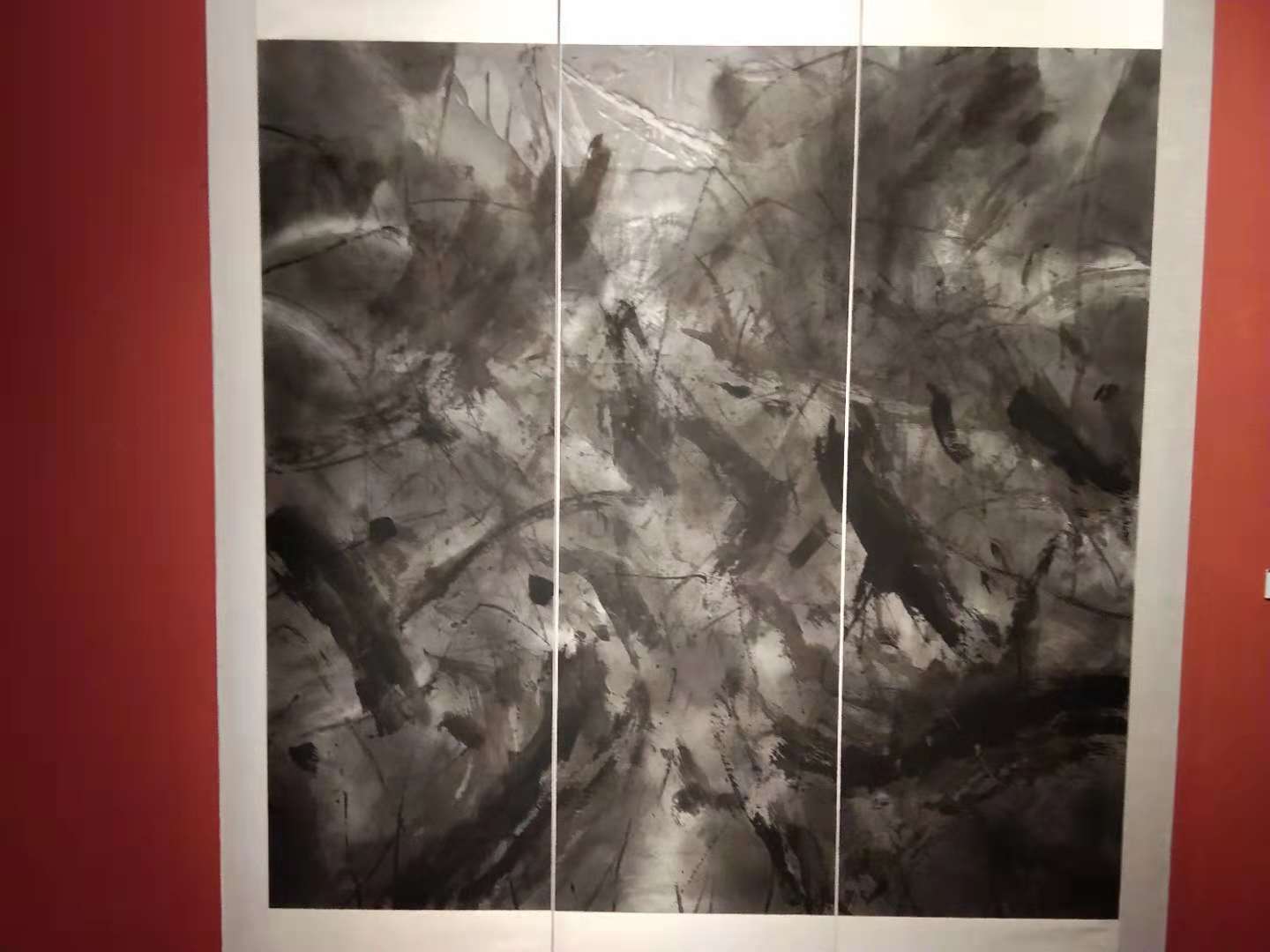 電梯上至二樓,走進展廳,一下子給人一種寧靜的視覺沖擊,畫靜靜地掛在墻上,觀眾也是靜靜地的看,輕輕的腳步聲也怕把一幅幅畫吵醒,春濤的畫就是這樣,作品里放進了許多現代元素,他的畫是中國的,他的作品又是國際的。