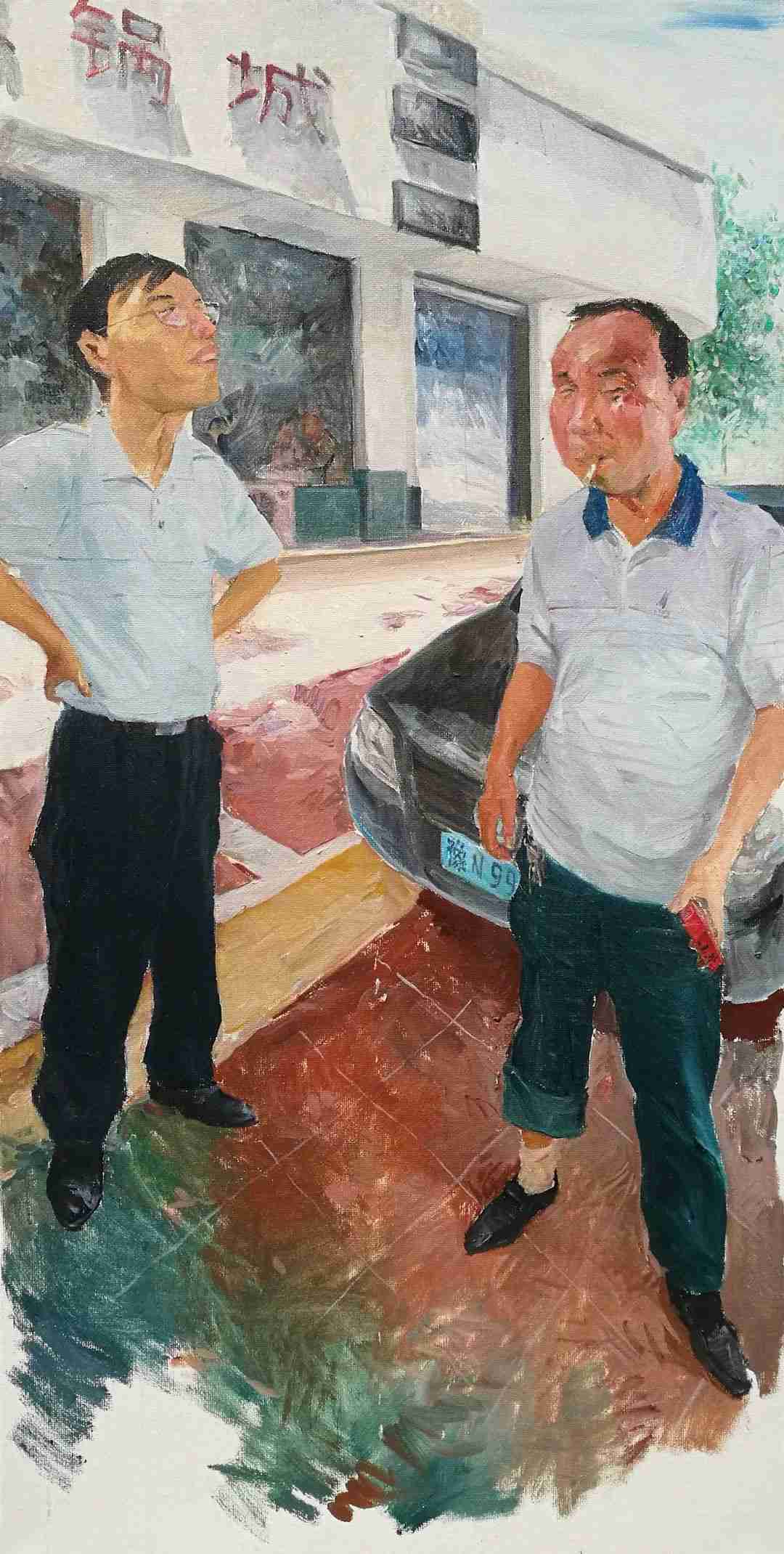 吳曉申,二個(gè)河南人之飯局后,布面油畫,200×100cm,2017