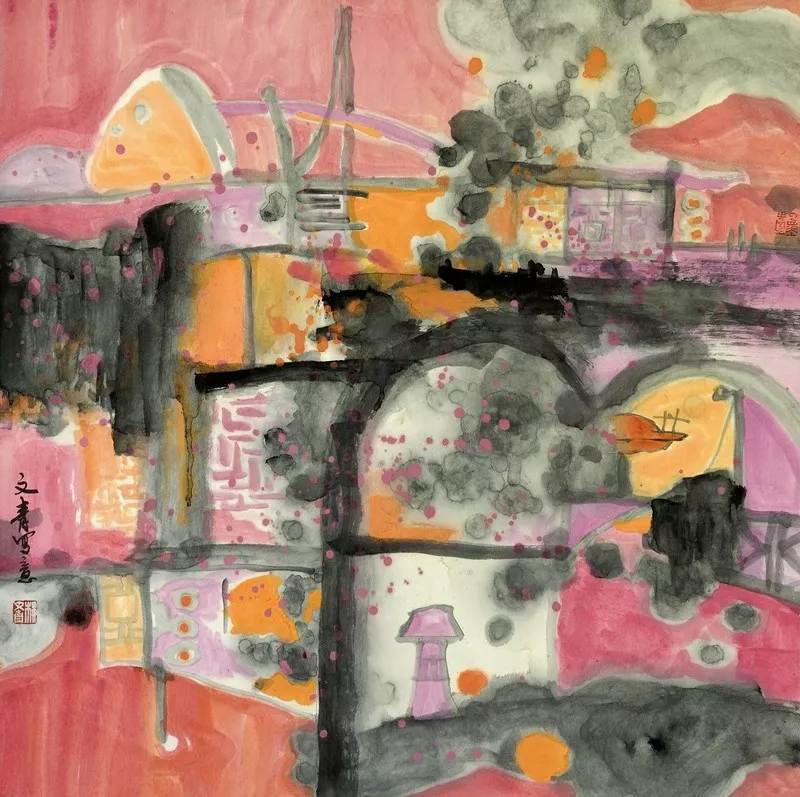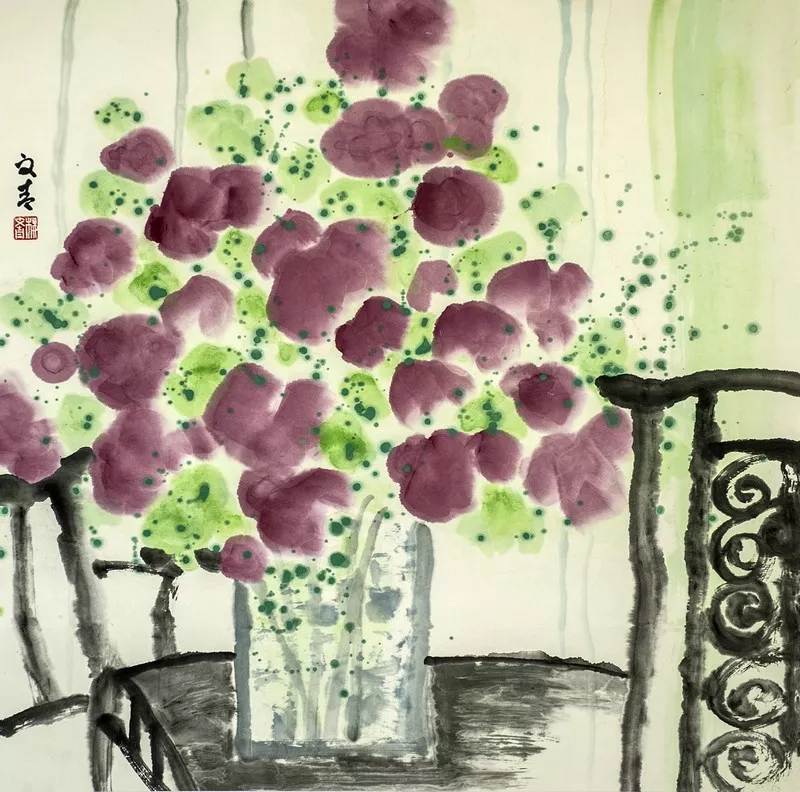 樓文青老師畫風大膽自由,跳出了對物象真實的追求,在具象與抽象之間,在墨與色的碰撞間,賦予了作品更大的空間和張力,其獨特的藝術語言給傳統的中國畫注入了新的生命力。其藝術表現,充分體現了主觀凈化之后的重組、抽象和概括,真實地表達了作者對生活的激情與感悟,主客觀相互沁潤,可謂天人合一。