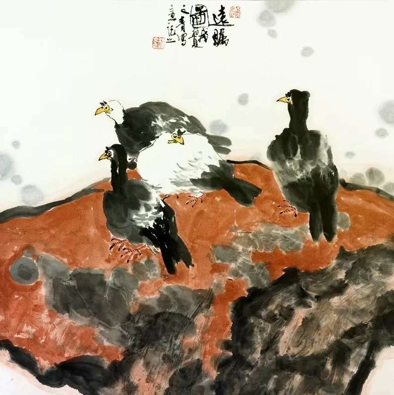 這些作品中,不僅運用了中國畫的傳統筆墨技法,更融入了很多色彩的表達,從具象到抽象,從提煉到重組,力圖表現生活多彩的一面,大美的一面。
