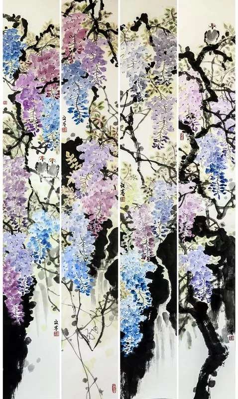 《紫氣東來》(四條屏22.5cm×180cm×4)