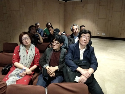 昨天賓客滿坐,虹口區(qū)文聯(lián)主席陸健早早地來到海派文化中心,歡迎上海市書法家協(xié)會副主席晁玉奎,上海市政協(xié)書畫院常務(wù)副院長張培基,浦東新區(qū)美術(shù)家協(xié)會主席徐立銓,上海美博藝術(shù)館陳董事長,新民晚報資深編輯、書法家丹長江,以及來參加活動的許多著名畫家和美術(shù)愛好者。