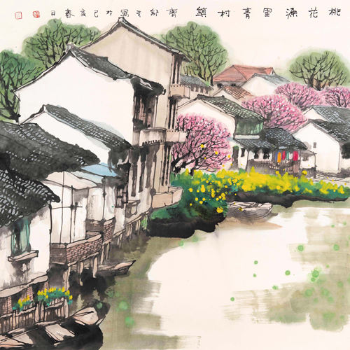 在上海市美術家協會中國畫藝委會、上海市虹口區文學藝術界聯合會的指導下,由青村鎮人民政府、上海美協花鳥畫藝術沙龍主辦,海派文化中心承辦的“世外桃源,遇見青溪”青村老街,吳房村桃花主題中國畫作品展,于六月六日下午兩點鐘開幕,展覽時間到六月十二日。