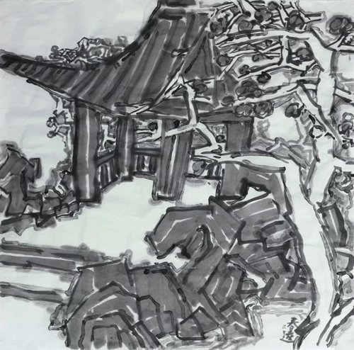 《姆媽住額小區》 水墨  69 x 69cm 2019年