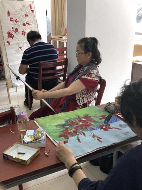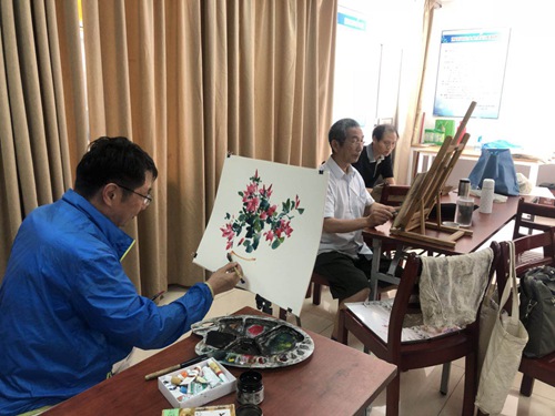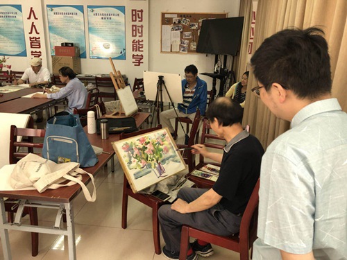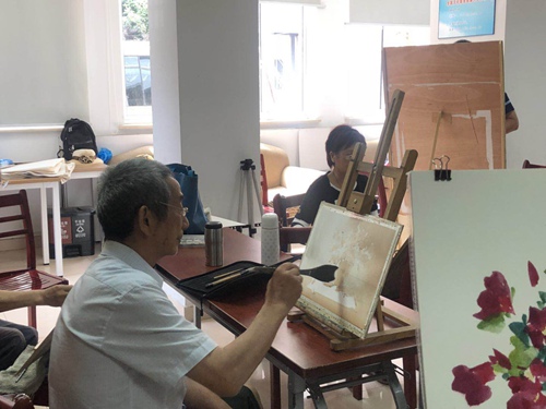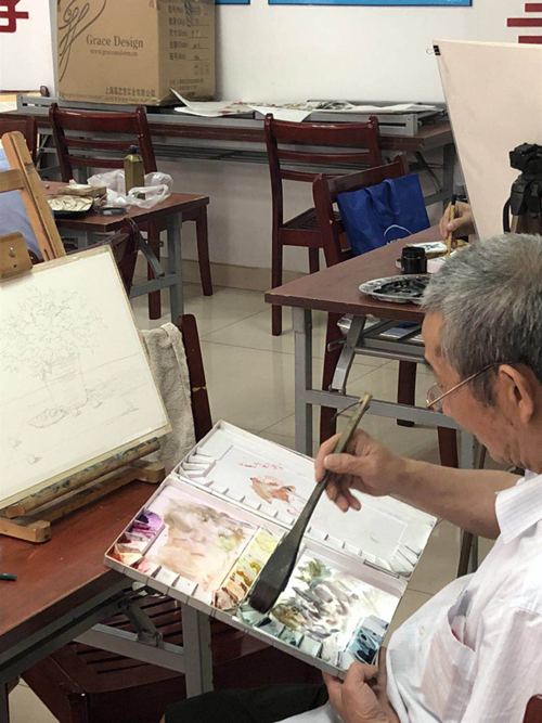 昨天下午在天山街道社區文化活動中心,在畫友薈創作沙龍主持武國強老師早早地來了,沙龍成員的老師們從全市各個地方匯聚在一起,最遠的從金山區過來。雖然是國畫組活動,油畫、版畫和水彩畫的老師都來寫生了。