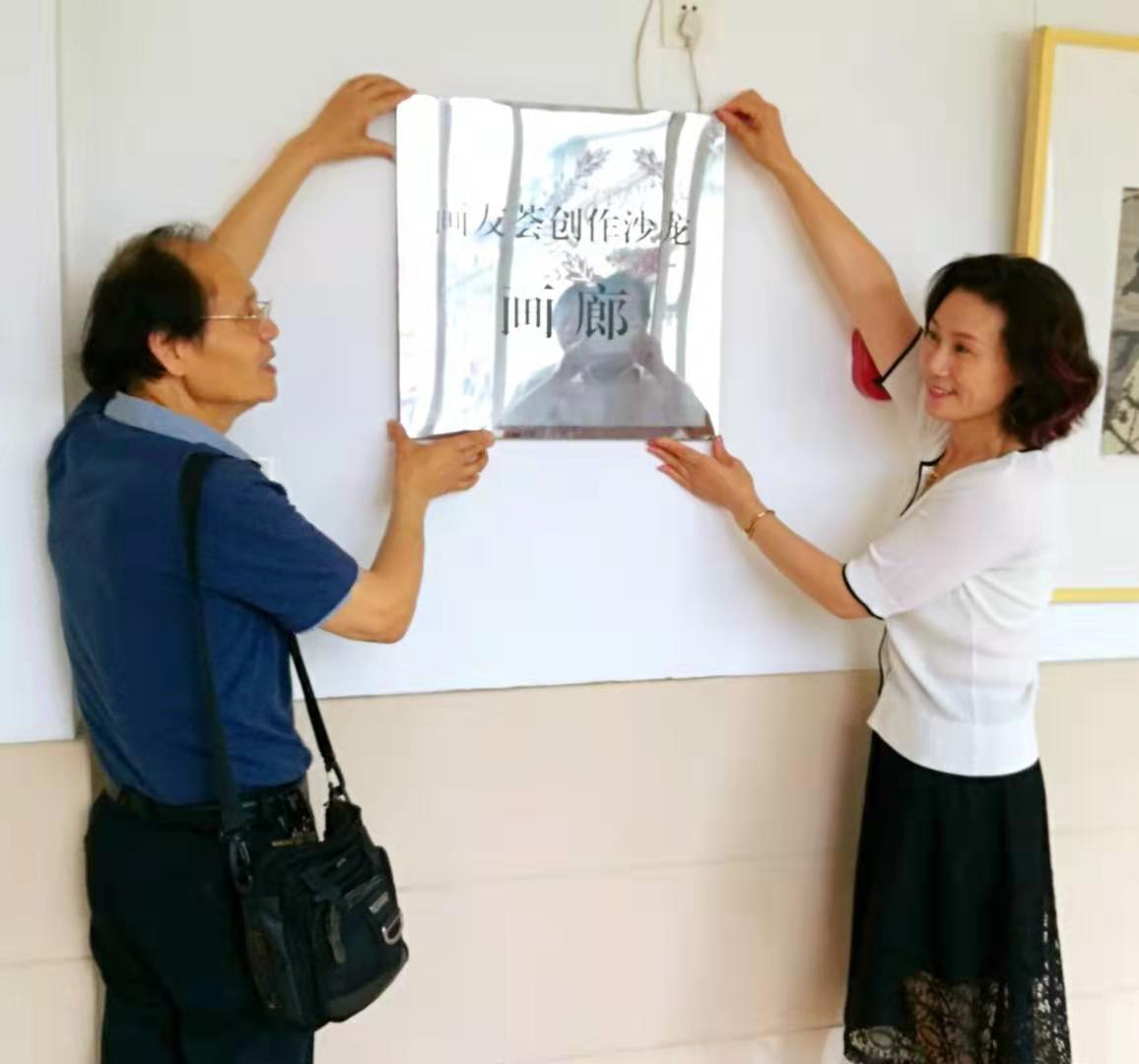 天山街道文化活動中心主任周蓉和畫友薈創作沙龍主持武國強老師,在七月七日上午布展的時候,做了一個簡單的儀式。