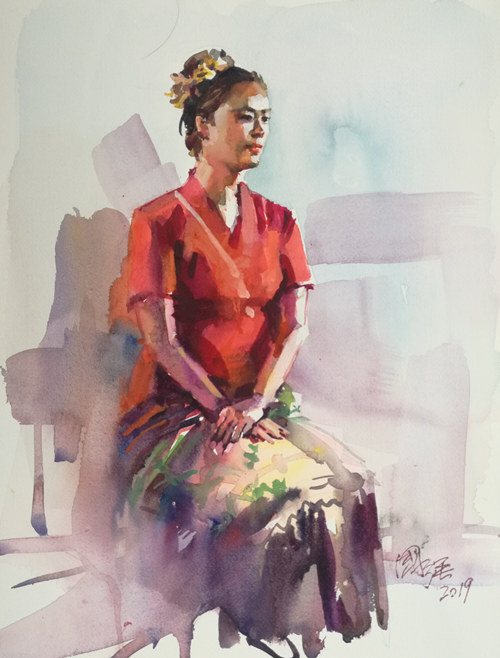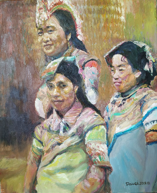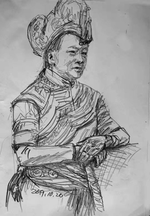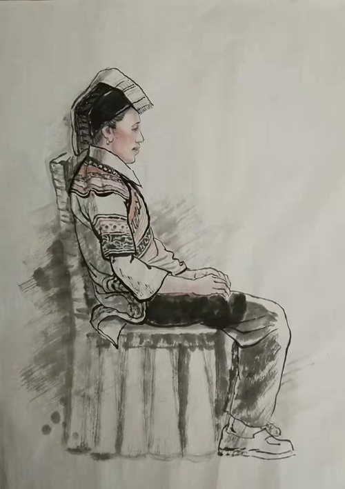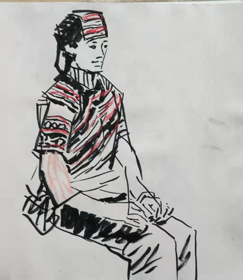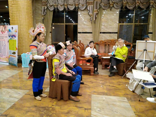 畫家們不顧一天寫生的疲勞,晚飯以后就寫生人物了,這些哈呢族模特,都是酒店餐飲部周經理幫我請來的。