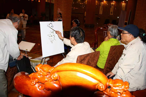 少數民族人物寫生,吸引了許多畫家,由于一天的寫生,大家累了,我以為晚上人物寫生的畫家不會多,想不到,過來一會兒,基本上都到大堂來寫生了,許多畫家的作品還是很精彩的。