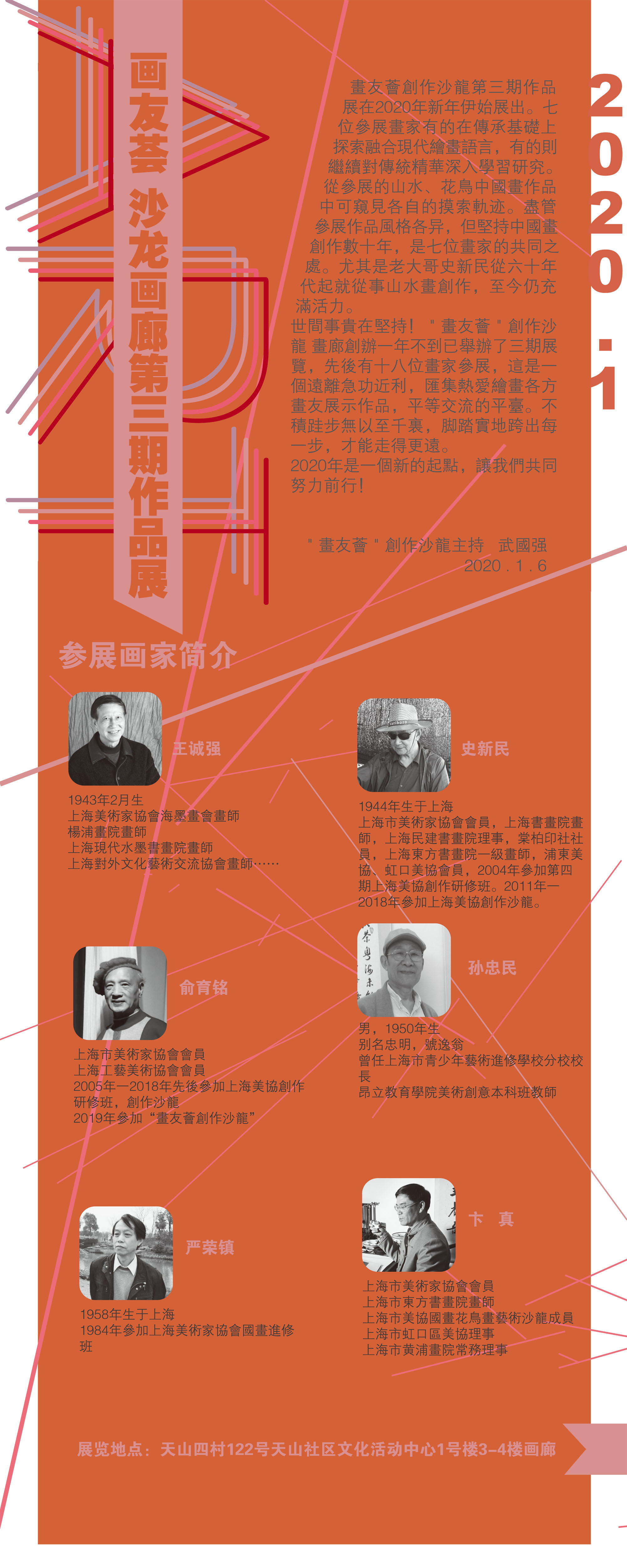 主辦單位 “畫友薈”創(chuàng)作沙龍 媒體支持 美術(shù)家書法家藝術(shù)網(wǎng) 開幕式時(shí)間 2020年1月7日下午14:30 展覽地址 天山四村122號(hào)天山社區(qū)文化活動(dòng)中心1號(hào)樓3-4樓畫廊 上一條:海上彩虹——虹口區(qū)書法美術(shù)精品展 于今天下午開幕 下一條:上海畫家云南之行寫生作品展