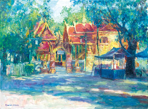 陳慧《云南曼聽公園白塔下龍吐珠》