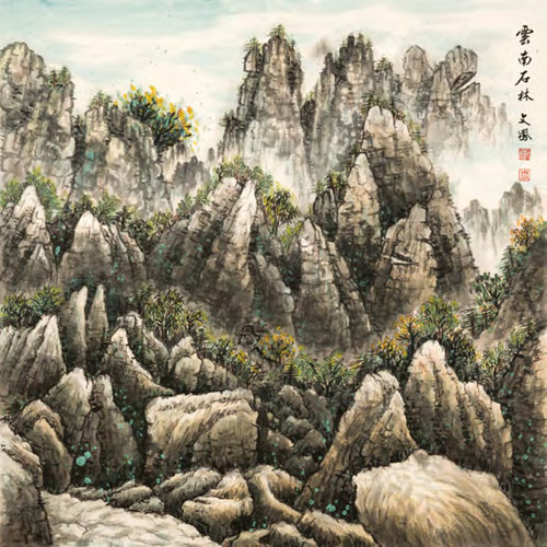 畫友赴滇共圓夢,山河多情附雅風。覽盡七彩俊模樣,采風盡溶筆墨中。