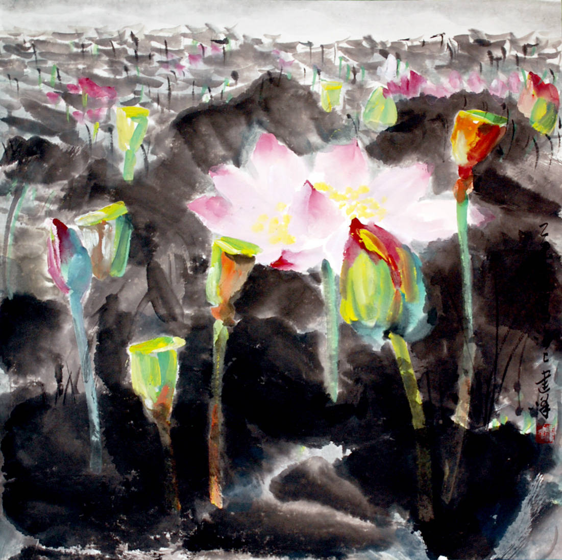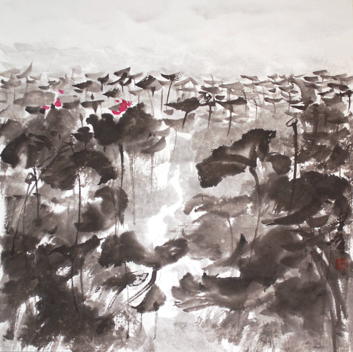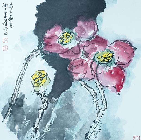 這七幅荷花小品“50×50cm”,是2019年在嘉定的古漪園現場寫生的系列作品。