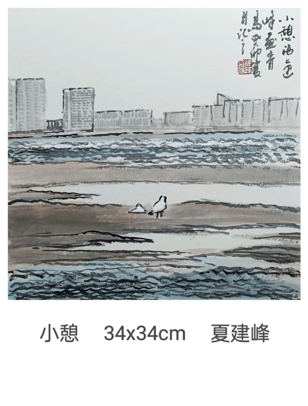 夏建峰的作品,色彩鮮明,繪畫題材尤以花鳥為主,兼顧書法、山水與人物畫,融詩書畫印于一體,善于吸收民間藝術養分,借鑒外來繪畫技法,兼具實用性和現實性。繪畫題材豐富,生活氣息濃厚,與市民生活密切相關;他具有海派繪畫作品布局精巧,筆法簡潔,境界新奇,既有細探原委、講究書卷的風氣,又有婉約柔美、清惠秀麗的性格,在歸并與重塑傳統文化的過程中,彰顯了追新求異。