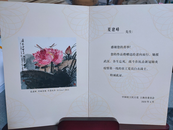 二月底,在農工黨上海市委會秘書長王曉東同志的倡議下,夏建峰和農工黨上海書畫院院長陸春濤、書畫院秘書長倪煊標一起商量。決定由我們農工黨上海書畫院的畫家為我們農工黨的醫務工作者創作一些書畫作品,讓我們援鄂的英雄們在凱旋歸來的時候,作為禮品,贈送給當代最可愛的人。