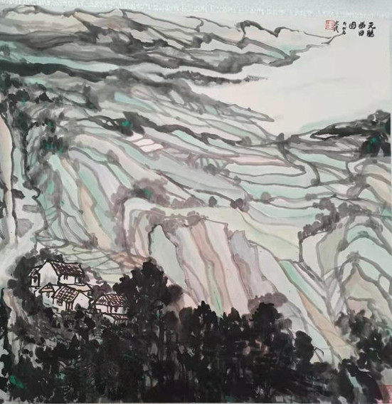 2014年水墨山水農家樂入展上海市藝術館。