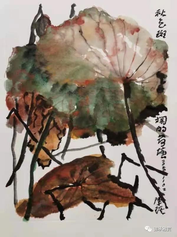 時間很快,一晃三年過去了,合適的人終末遇到,可這想法卻一直占據(jù)著我的心里,沒有泯滅。感謝童雁汝南老師,就在出席他武漢的畫展上,偶遇了陳琪先生,他的畫,他的書法一下子打動了我,這正是我要找的那位畫家!特別是他的書法,筆力雄健老辣,帶著濃濃的金石味,這線條正是表現(xiàn)古陶瓷最好的形式。