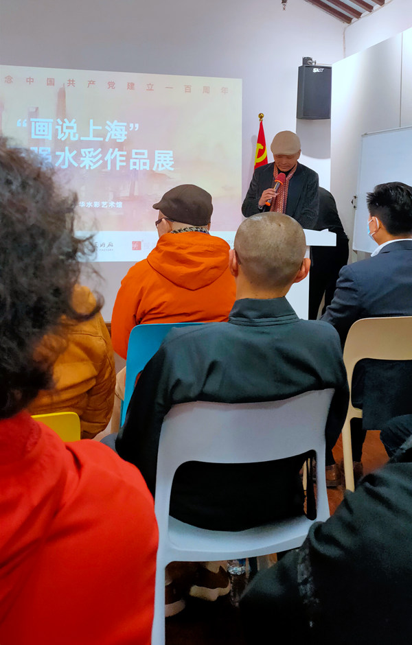 全華水彩藝術館執(zhí)行館長楊見鈞先生對武國強先生這次的畫展做了介紹,再一次述說了武老師老師的水彩畫作品反應了上海的城市變化,和老上海建筑的情懷。在建黨100周年之際,這個畫展具有更重要的意義。