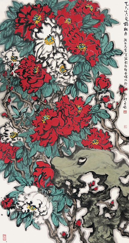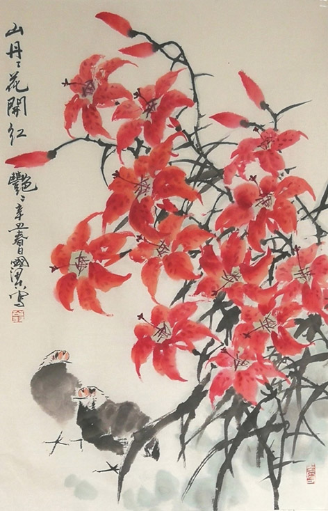 翁國樑 山丹丹花開紅艷艷 70×45cm