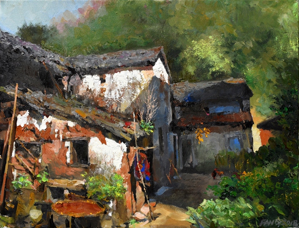每個畫家都在力圖以獨有的形式語言來詮釋自己對自然界、對生活的理解,繪畫領(lǐng)域中真正能夠找到不同于古人,不同于今人,有別于他人而只屬于自己的繪畫形式是相當(dāng)難的,我們不泛看到全國各畫展中,作品面貌雷同、似曾相見的狀況十分嚴重,甚至可以說泛濫成災(zāi)了,有些畫以繪畫的形式法則去品評似無可挑剔,可細品其畫,有意境、有新內(nèi)涵者微乎其微。我始終認為自然天成是繪畫的高境界,真情釋放是一個畫家的根本,這種自然釋放無需去刻意追求,而是繪畫諸元素的天然的有機結(jié)合,是東西方文化的互補和融合,是畫家“讀萬卷書,行萬里路”的長期積累,從而形成了畫家獨有的感受和意象,并通過豐富的藝術(shù)修養(yǎng)、純熟的繪畫技法和完美的藝術(shù)形式呈現(xiàn)出來,就是真情釋放了。