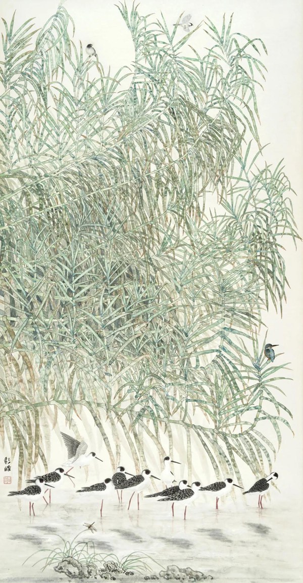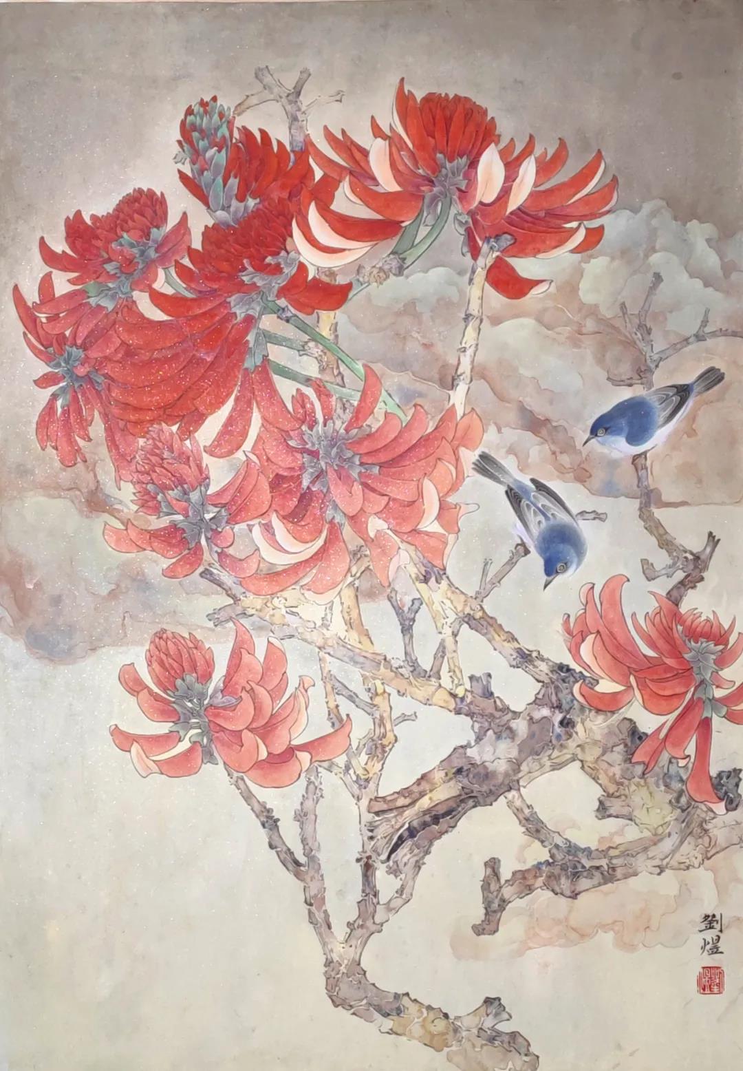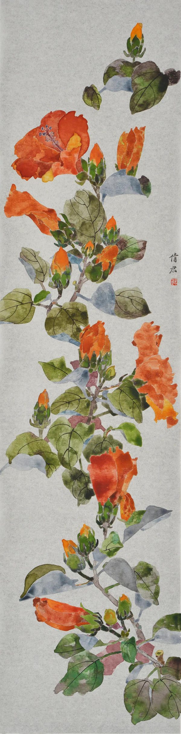 作品《夏》系列入選全國十大美院花鳥畫教學展,2019年,西安美術學院