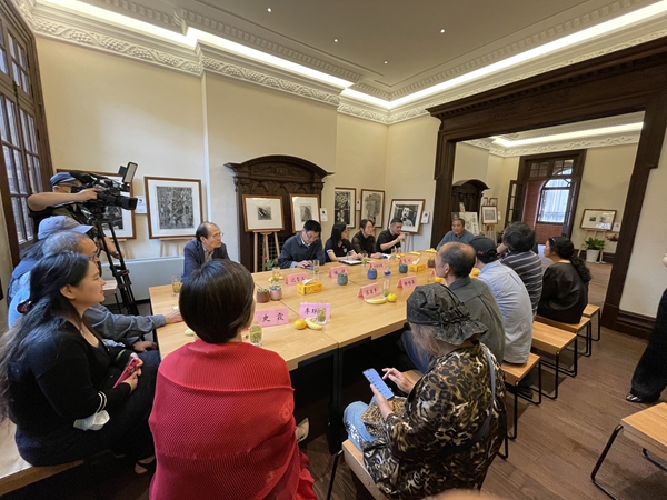 版畫家李瓊蓮老師發言:不管身在何處,都不忘記我的家鄉,要舉一舉家鄉的旗幟,盡管離家已經多年,仍然對家鄉記憶猶新,我的創作內容都來源于對家鄉熟悉的生活環境。