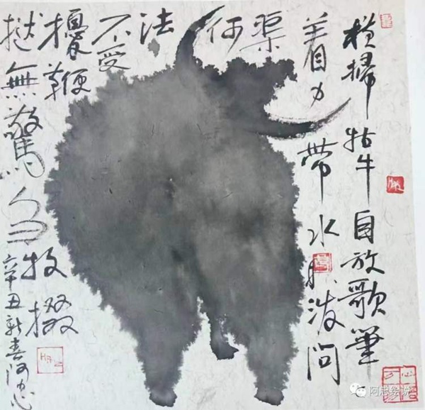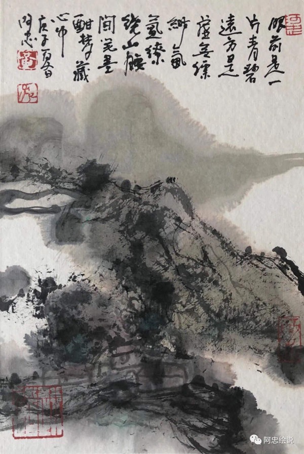 在“阿忠繪說”公眾號(hào)里,黃阿忠經(jīng)常把自己的繪畫和現(xiàn)代詩一起配發(fā)。古代文人最推崇的“詩書畫印”四絕全才,在黃阿忠這里,變成了中西藝術(shù)文化全面打通的融合型藝術(shù)大家。