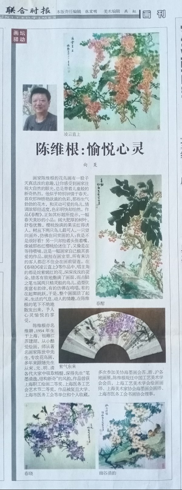 祖籍江蘇鹽城,1953年生于上海,自幼酷愛繪畫,師承畫家陳世中先生,專攻花鳥畫,在繪畫領域中克苦專研從宗、元、明、清各代大家中吸取精髓,作品深得“筆墨清逸,結構新奇”的風韻。