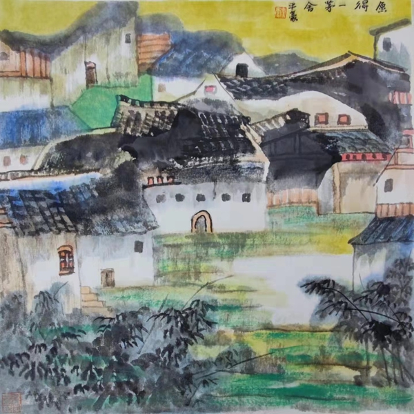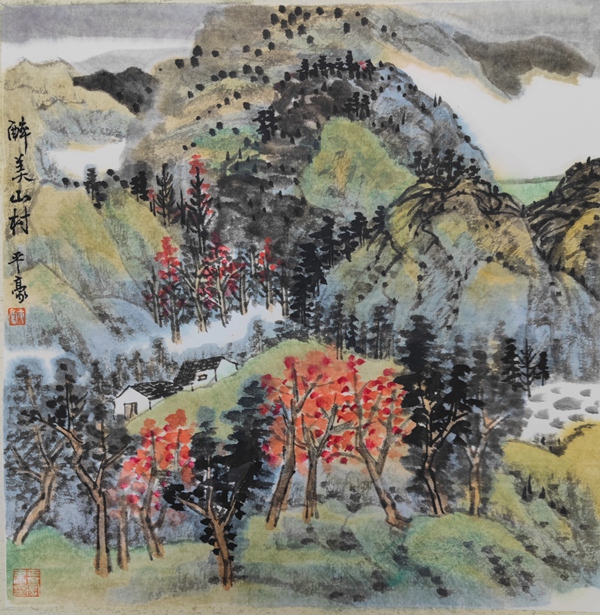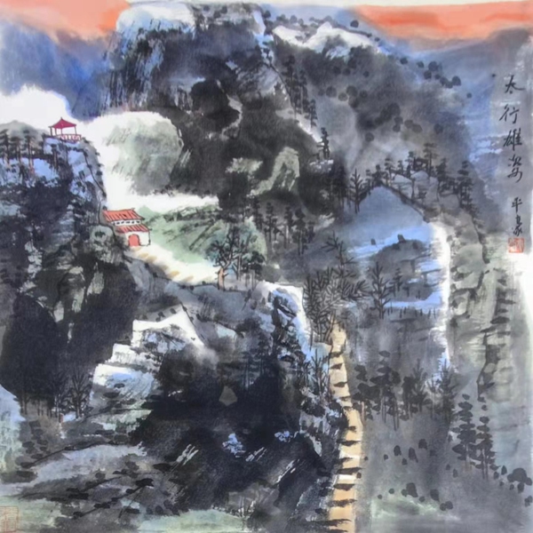 山水畫本是往時代中去的,抒情郁郁。平豪畫山水又重生活之情,受南方地域影響,平豪畫山將王蒙的滿山滿景和上龔賢郁郁層染的墨韻,沉郁之中山巒青蔥,草屋居舍,一方清新,真使山往朗潤中去。而深山幽然,層巒疊嶂,畫境也在古氣之中優哉游哉,如同現代人在美山美水中尋得一方凈水凈土。所以,山水畫的創新,其實還是從傳承中獲取生活的情趣,這樣的出新,也就是我們常說的山水的精氣神會使山水郁郁蔥蔥,更給人一種朝氣,平豪的近作追求此境,很生時代之趣的。